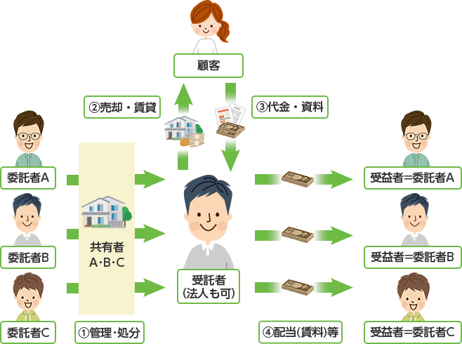 相続などで共有関係になってしまった不動産の管理処分に有効な方法です。